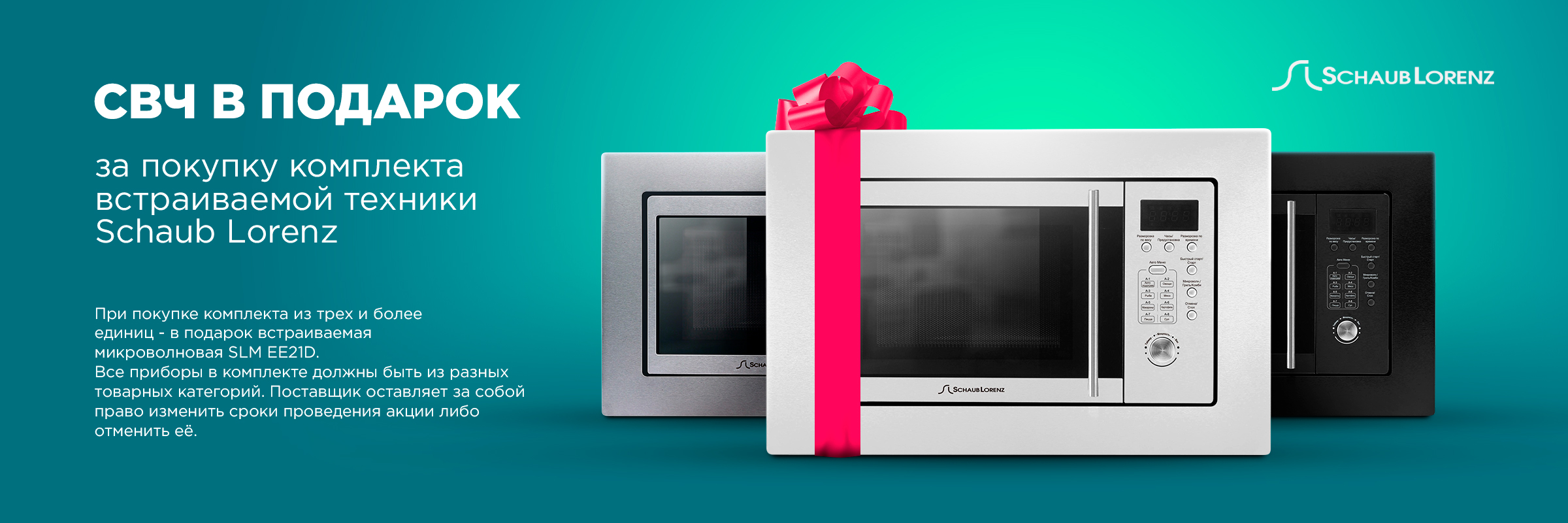 При заказе комплекта продукции Schaub Lorenz, состоящего из 3-х единиц – в подарок встраиваемая микроволновая печь: SLM EE21D